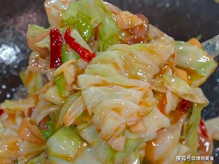 2、锅中烧油,油热放入牛肉丝炒出香味,再放入葱花、姜末、蒜末、干辣椒煸炒出香味,放入包菜,翻炒至断生,加入一勺盐,一勺鸡精,一勺白糖,一勺蚝油、一勺生抽,大火翻炒均匀即可。
