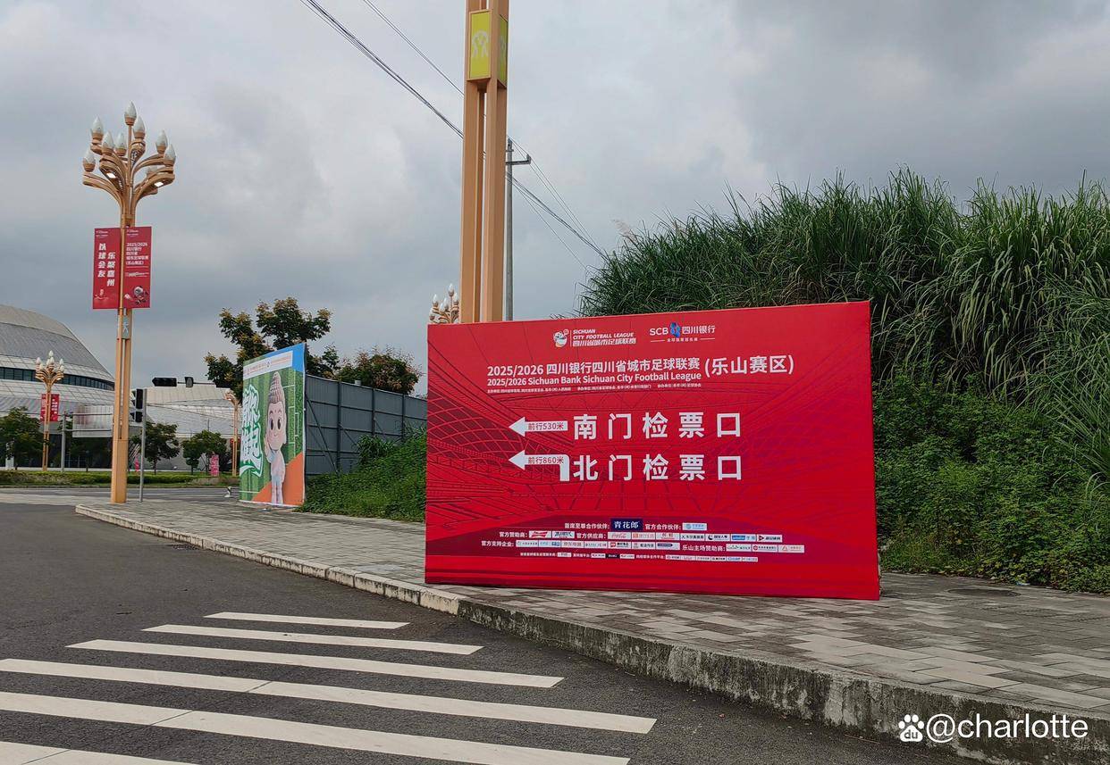 各类引导标识醒目设立——免费摆渡车点、观众入口、嘉宾入口、运动员通道等清晰可见,方便到场观众迅速找到各自位置。看台上,工作人员正有序完成对座椅、栏杆及设施的清洁工作,营造干净舒适的观赛氛围。整体场馆内外井然有序,彰显乐山对省级赛事的高度用心。