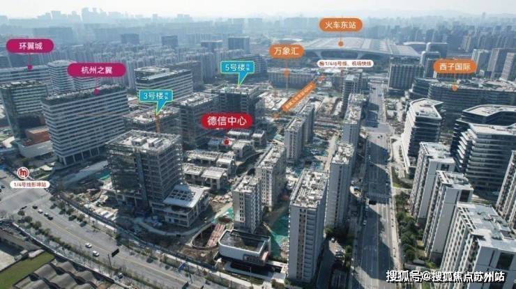 德信中心与杭州东站直线米,与杭州之翼、环翼城等组成约62万方德信商业集群,成为总部企业发展基地。坐揽万象汇、东站电子国际、港龙游乐城等商业,人潮所向,造就区域内难得一见的门户封面。